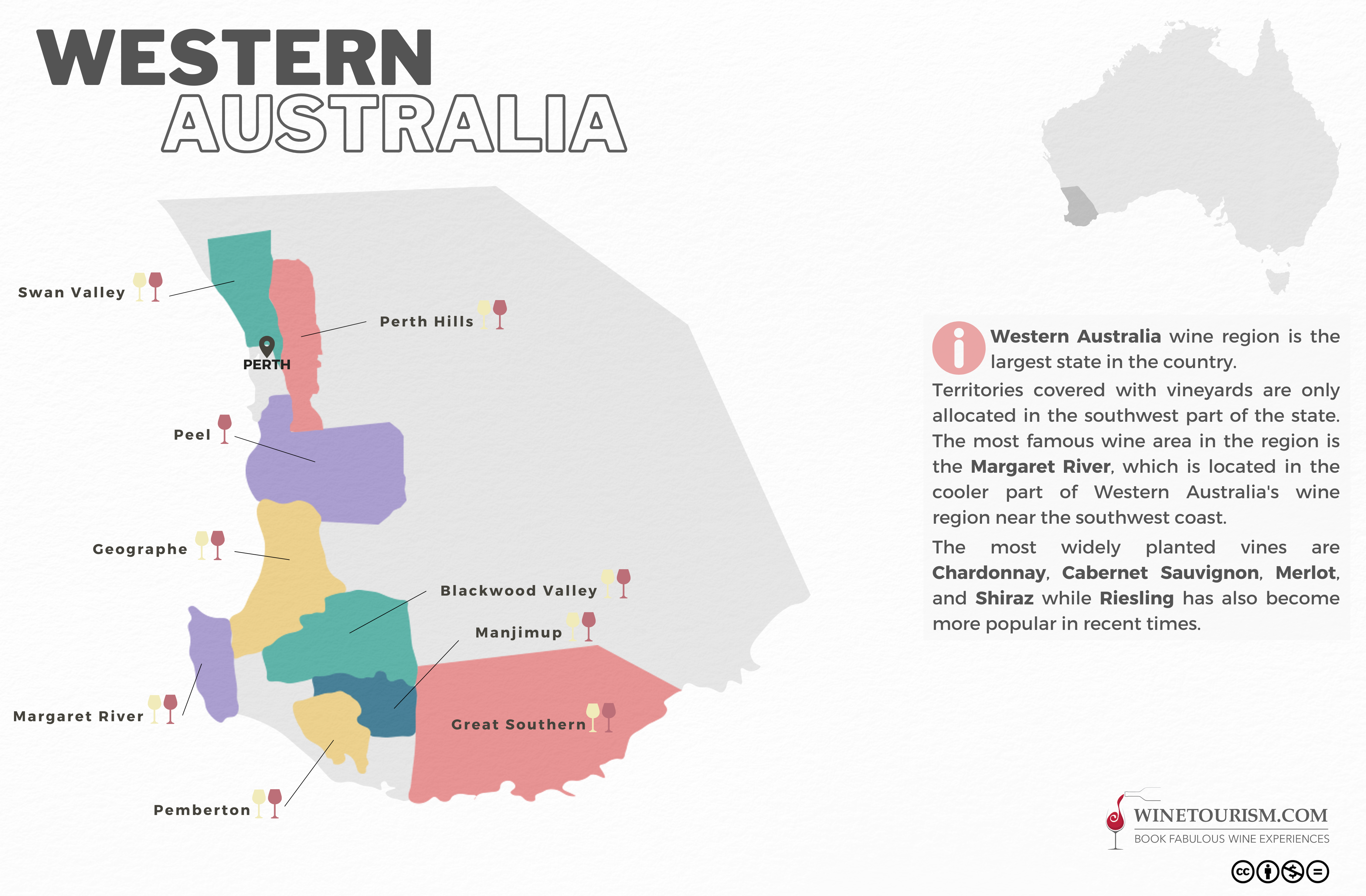 Here you can download a free, detailed, high-resolution wine map over the Western Australia wine region.